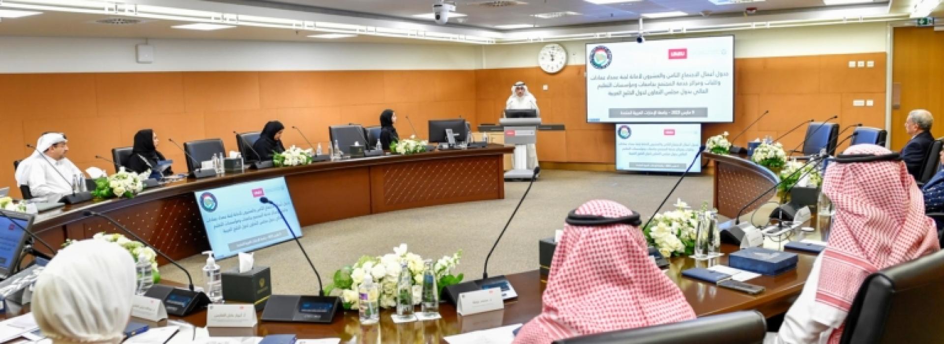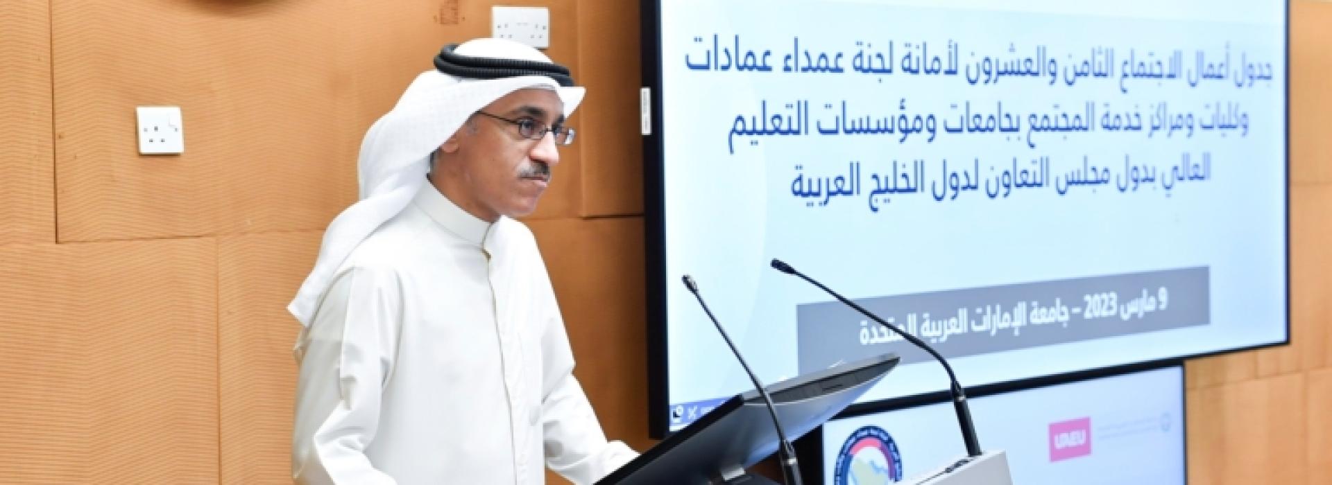 عمداء كليات ومراكز خدمة المجتمع بجامعات دول مجلس التعاون يناقشون ُسبل الارتقاء بالتعليم العالي وتعزيز التعاون المشترك في جامعة الإمارات.