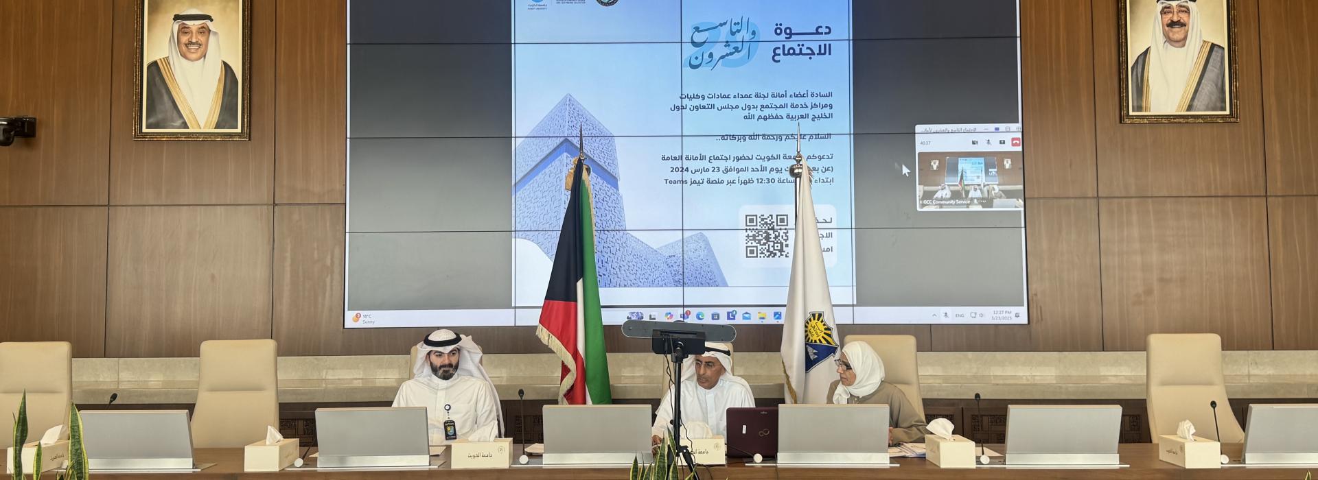 جامعة الكويت تستضيف الاجتماع التاسع والعشرون لأمانة لجنة عمداء عمادات وكليات ومراكز خدمة المجتمع بجامعات ومؤسسات التعليم العالي بدول مجلس التعاون، بتقنية الاجتماع عن بعد